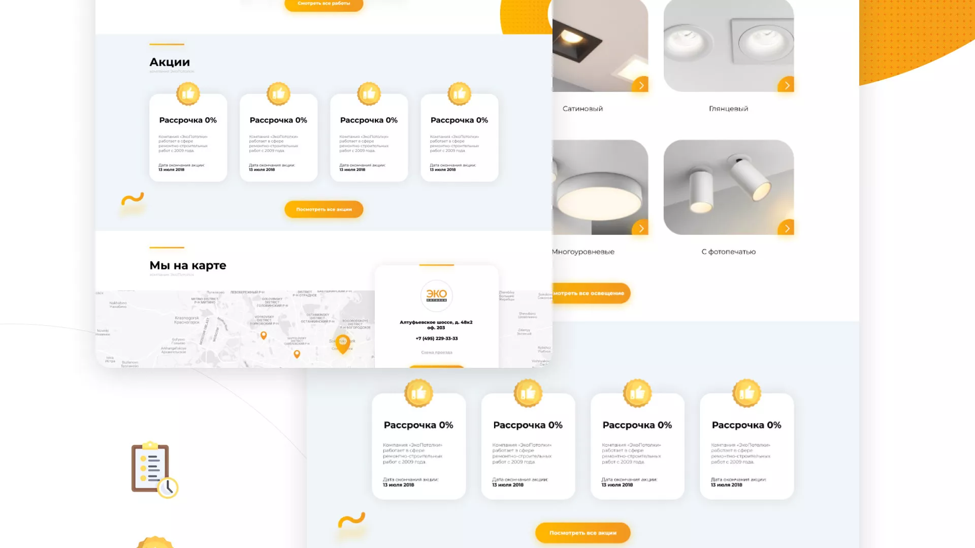 Вам нужна разработка сайта по натяжным потолкам в Юхнове? Специалисты компании «Мультзавод» готовы помочь! Мы предлагаем большой выбор уже готовых вариантов, а также можем создать и что-нибудь новое!