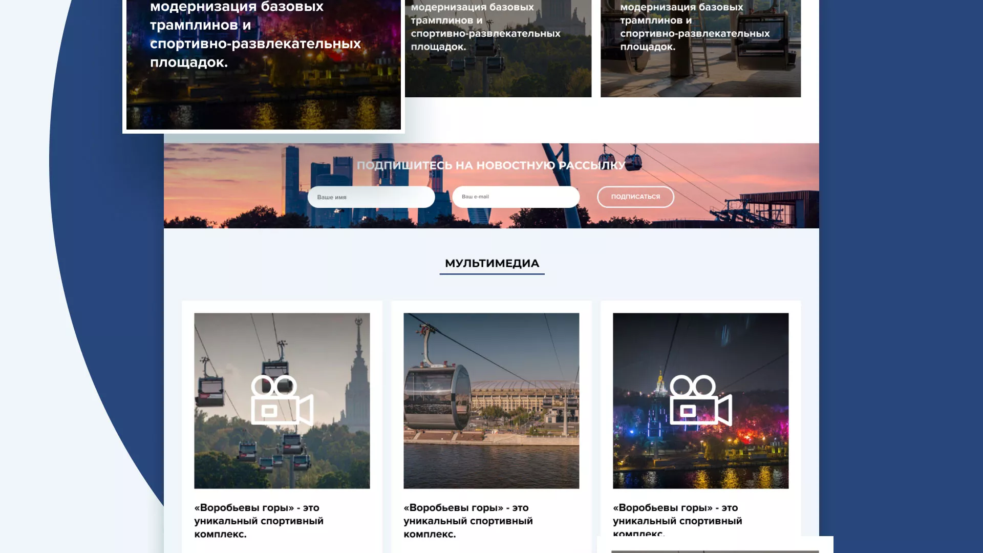 Разработка официального сайта в Юхнове для спортивно-развлекательного комплекса «Воробьёвы горы».